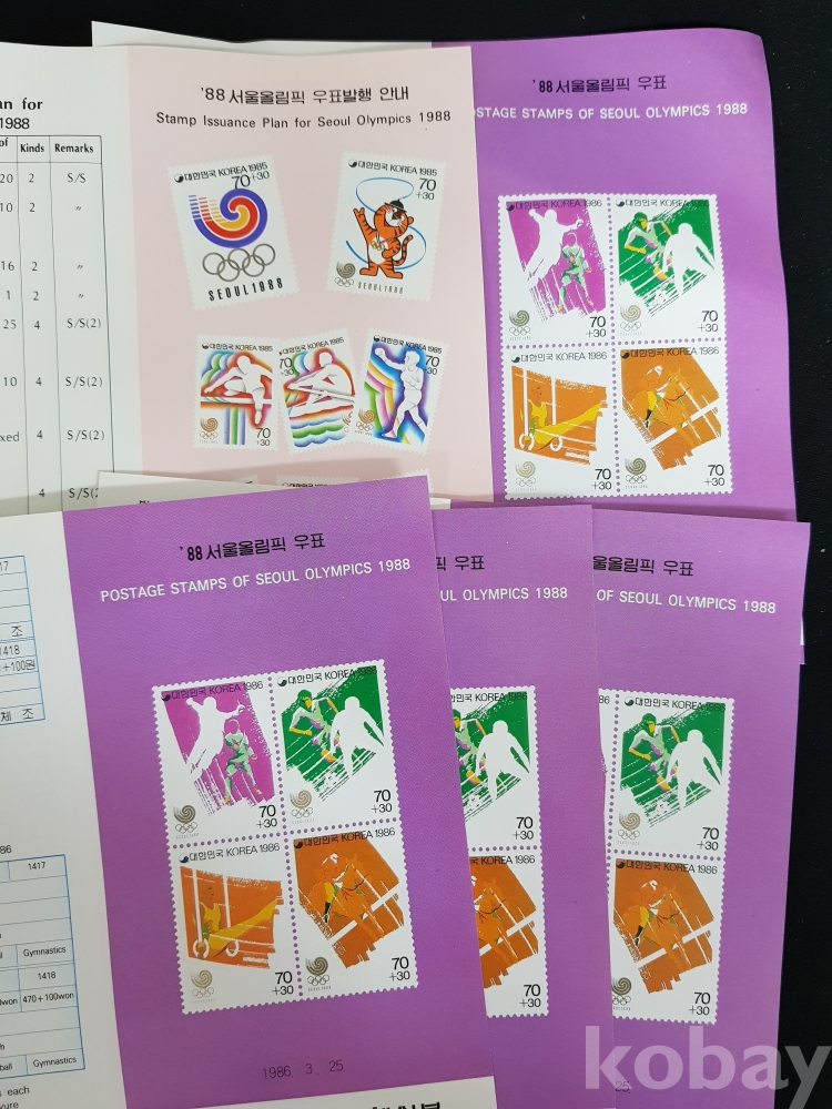 - 1986년 88서울올림픽 우표 전지, 시트, 안내카드 등