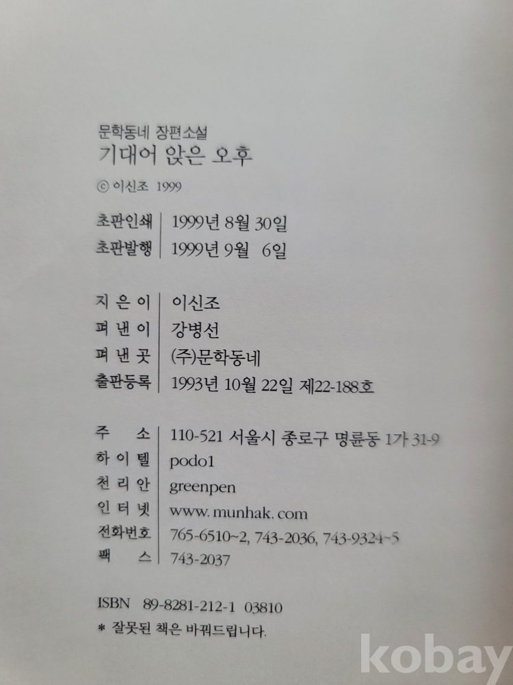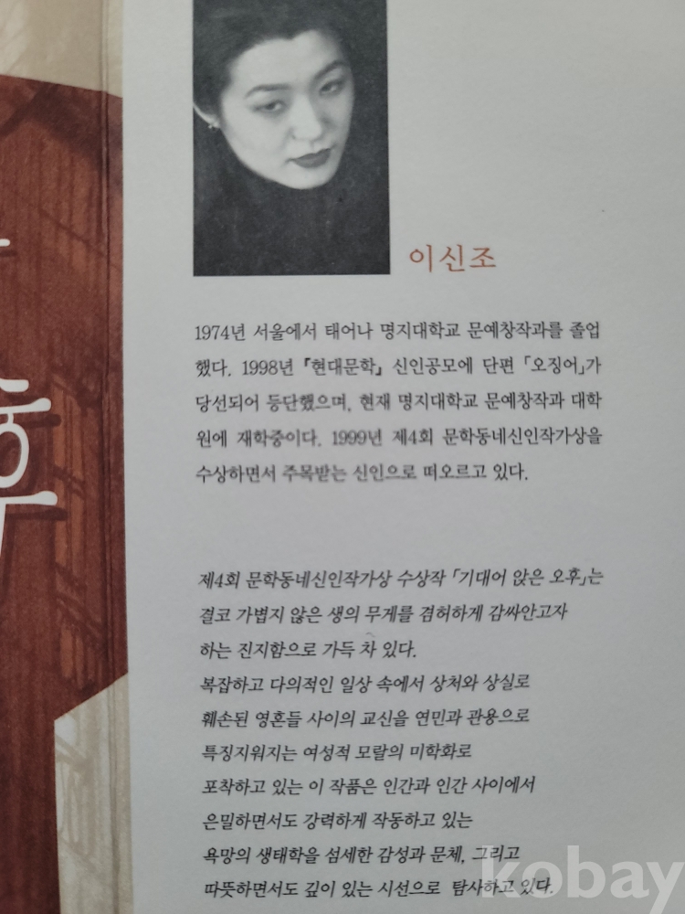 1999년 발간한 첫 장편소설 『기대어 앉은 오후』