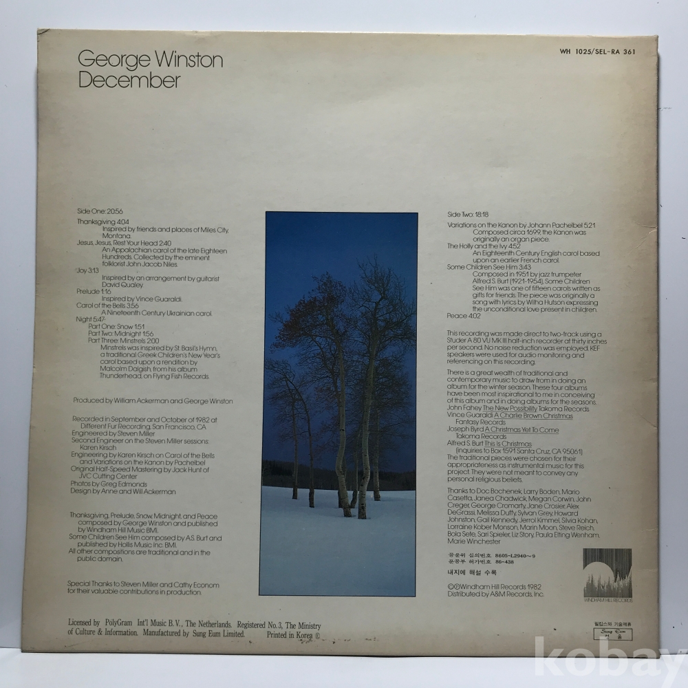 LP 86,000-40 George Winston - December . 자켓 EX 알판 EX 86 년 국내반