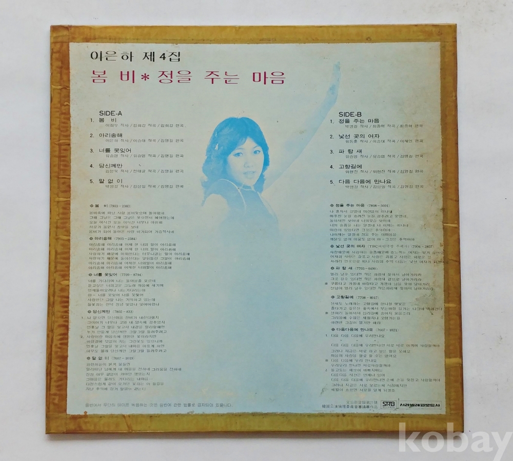 EX : 약간의 마모, 모서리 찢김 존재 음반상태
