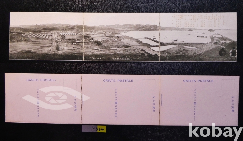 ▣역사자료, 일제시대, 일제강점기 사진엽서,그림엽서,회엽서. C564, 원산 흥남공장 3매 연쇄는 거의 없음.