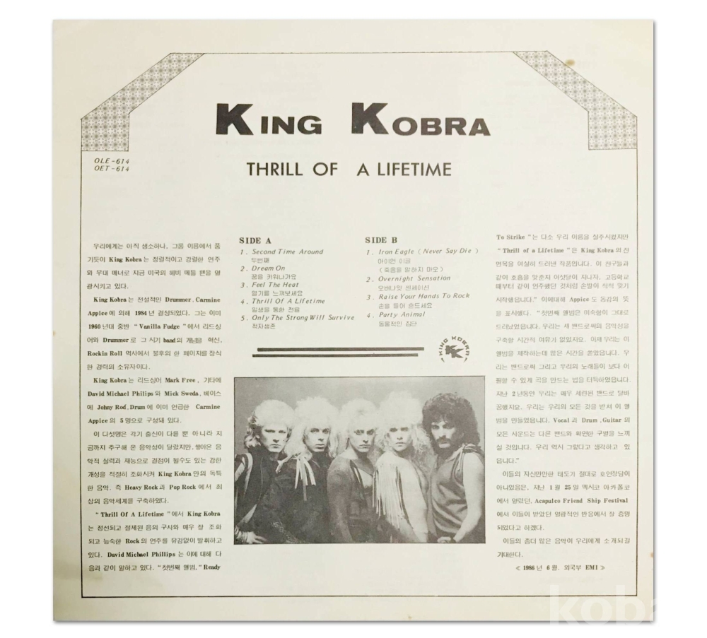 [국내초반LP] King Kobra - Thrill Of A Lifetime (해설지有)