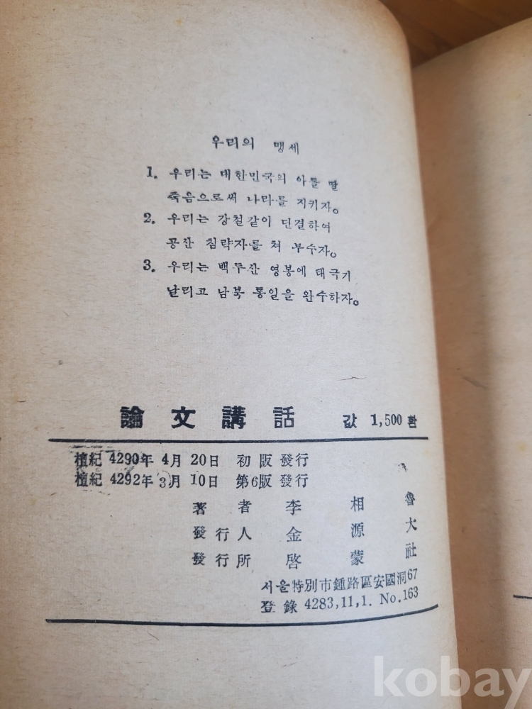 1. 논문강화, 이상로, 계몽사, 1959년, 578쪽, 상태 상, 사진 참조