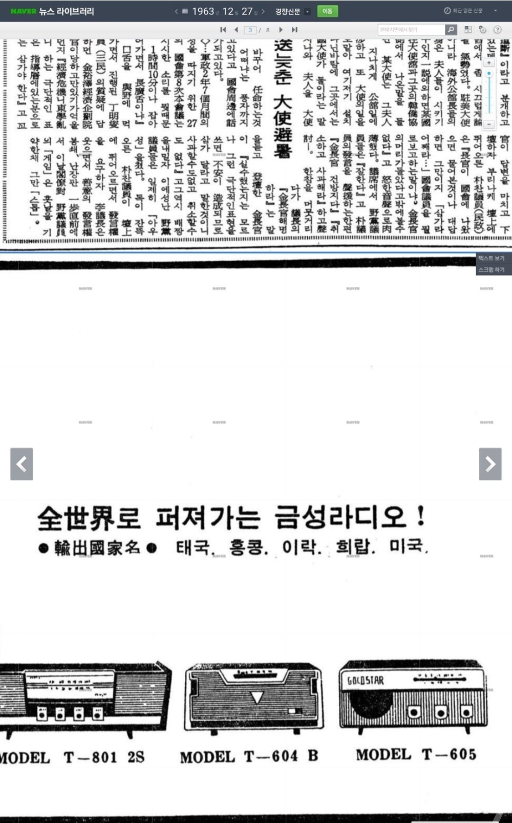 마지막 사진은 1963년 경향신문 광고와 T-605 기반의 미국 수출용 노빌리티 라디오
