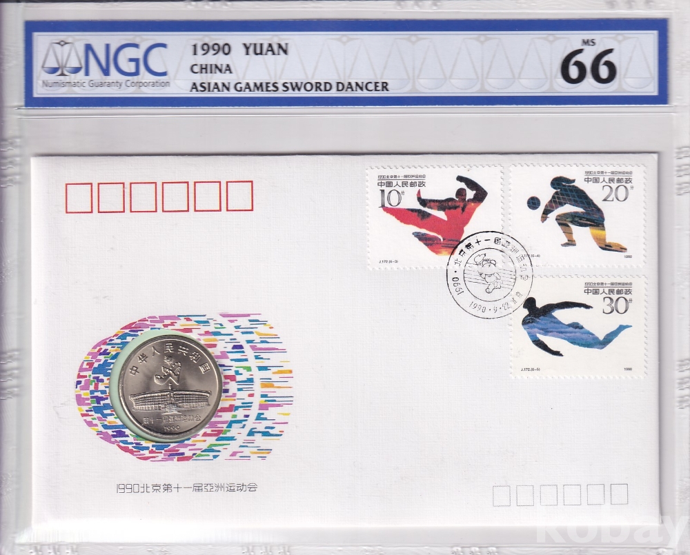 - 1990년 베이징 제 11회 아시안 게임 기념주화 및 초일봉투 NGC MS 66 인증 세트