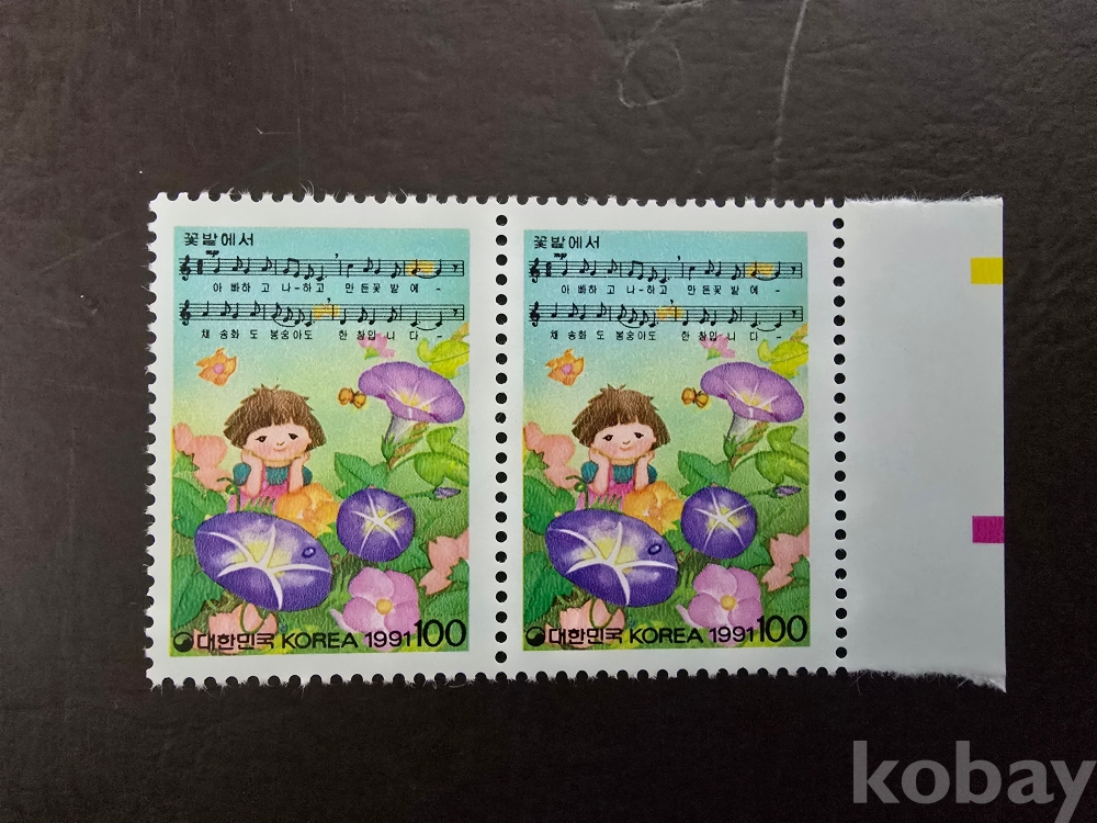 미사용 우표 2B/L 91'3.27음악시즈 7번째꽃밭에서