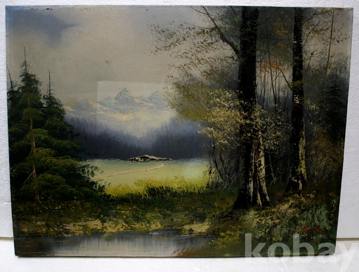 (유화) 호숫가의 풍경 유화 작품 : 사인 있음 ( 12 P)