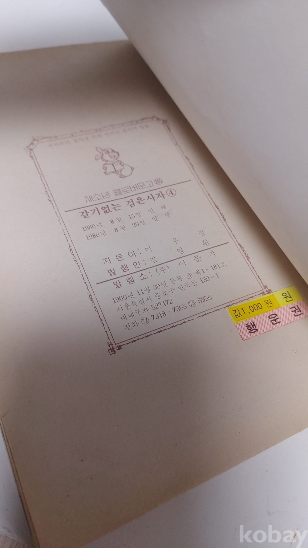 1980년 클로버문고 갈기없는 검은사자 4편 만화책 입니다