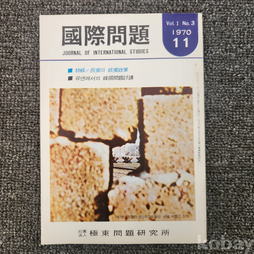 [한국현대사, 제3공화국, 통독, 유엔에서의 한국문제] 극동문제연구소, <국제문제 1970년 11월>, 극동문제연구소, 1970, p. 79, 상태 중상급(사진참조)