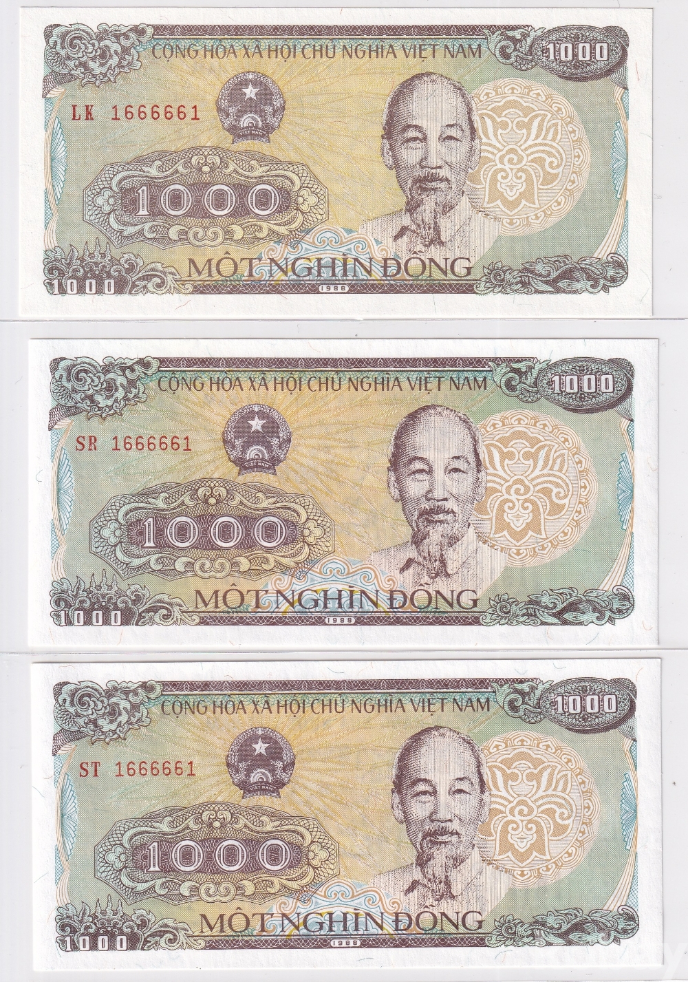 [베트남 지폐 특이번호 모음展] 1988년 1000동 1 66666 1 투 디지트 오봉 레이더 3쌍둥이