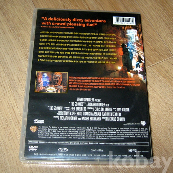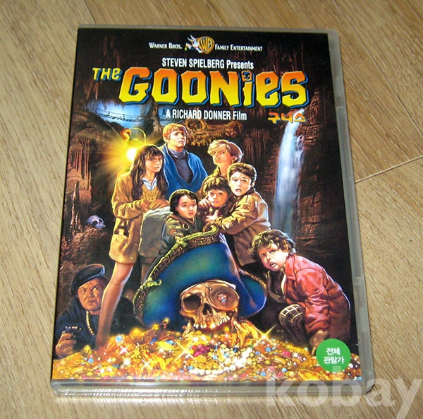 스티븐 스필버그의 영화 구니스 DVD입니다.
