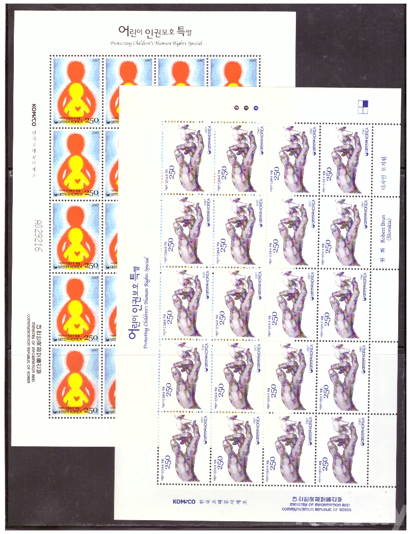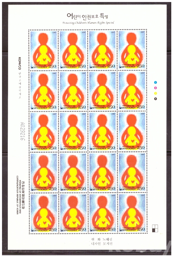 (한국전지) 2007.11.20 어린이 인권보호 2완 sheet of 20 MNH