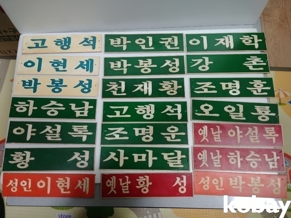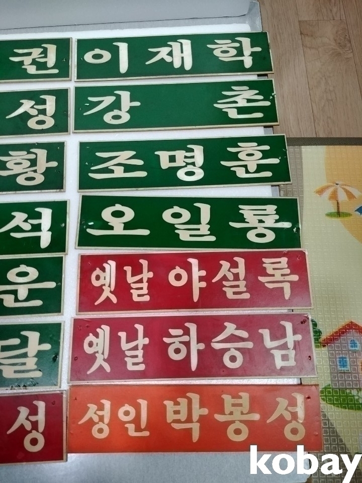 예전 만화방에서 만화책 작가별로 분류해서 못으로 밖아놓았던 작가별 푯말입니다