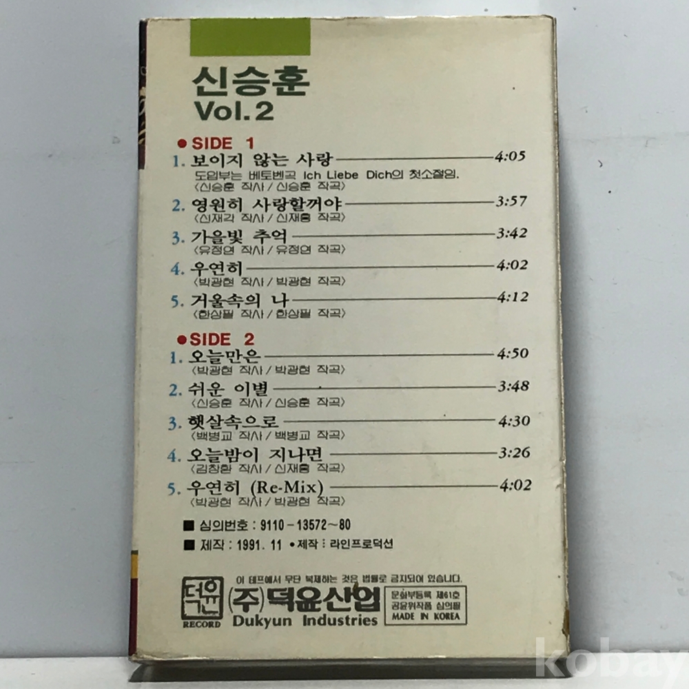 TAPE 7,000-20 신승훈 - 2집 (보이지 않는 사랑) . 자켓 : 실사 사용품