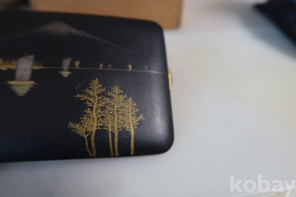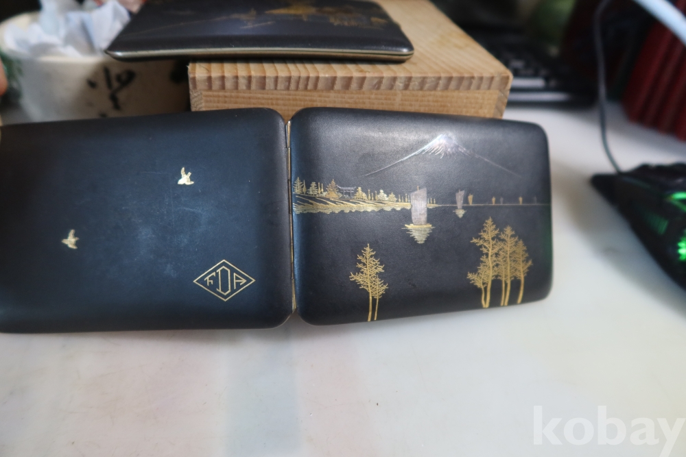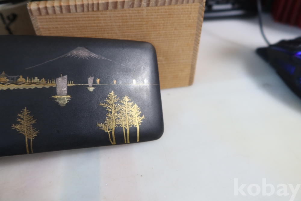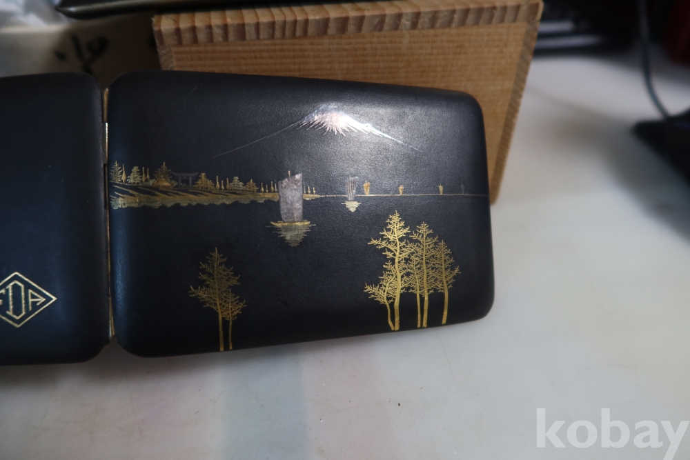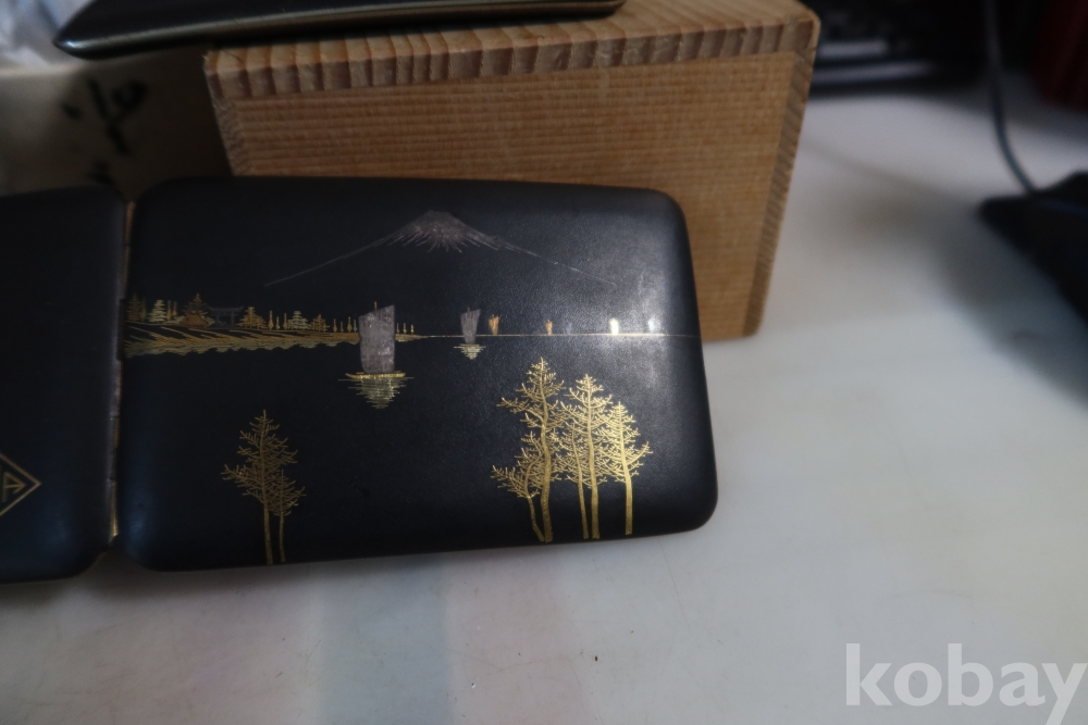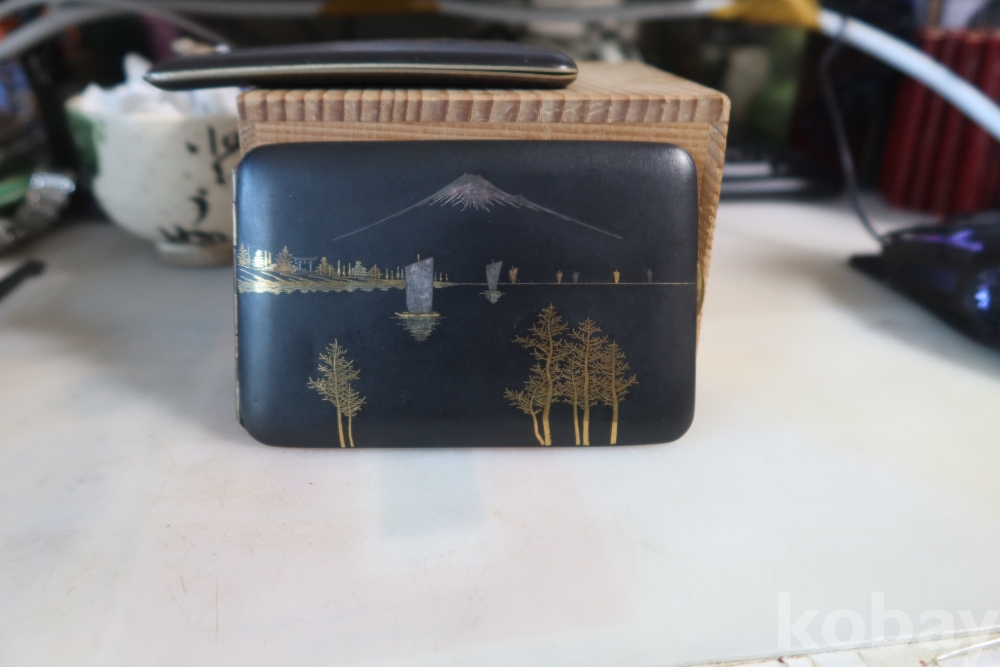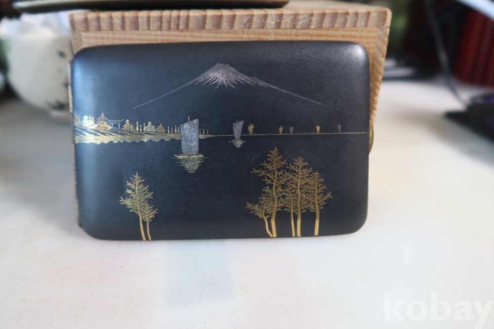 일본 담배 케이스 임니다 작가의 낙관을 가진 섬세 정교한 당대의 명품 임니다 후지산과 일본 집 등등 특유의 명품 임니다