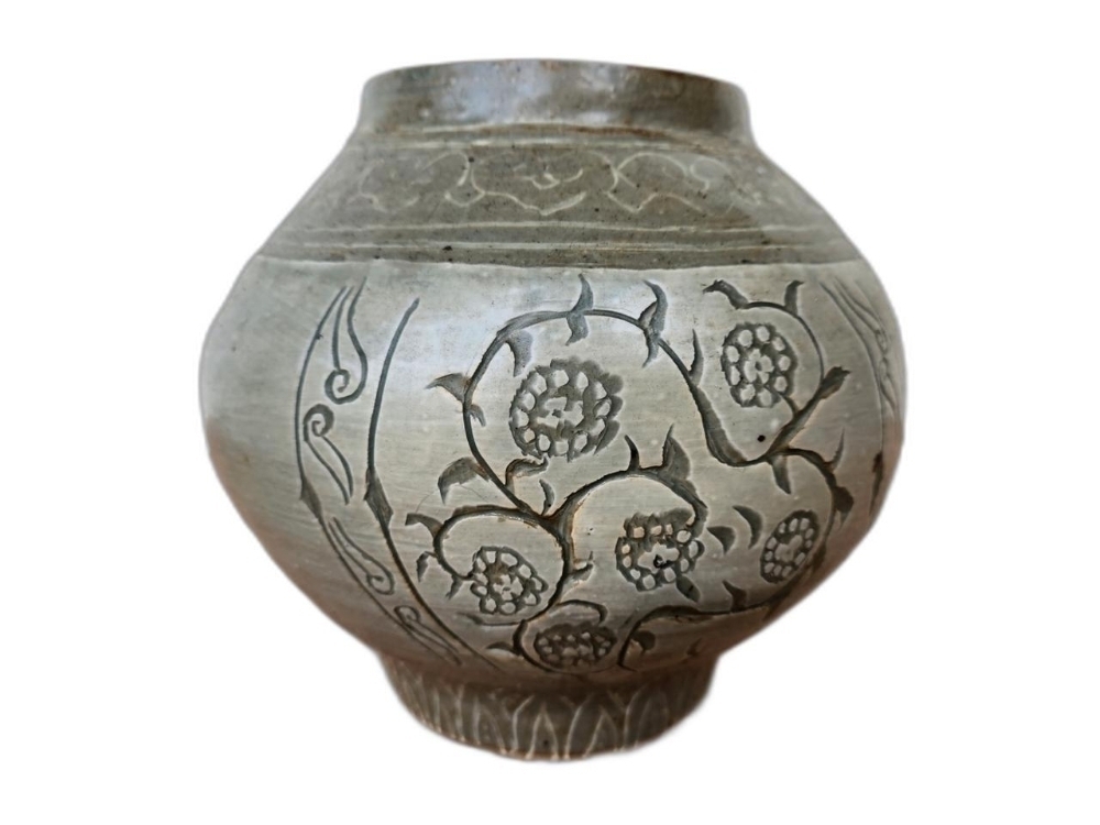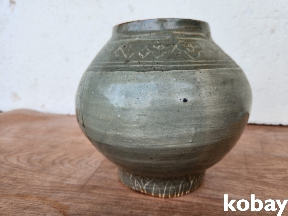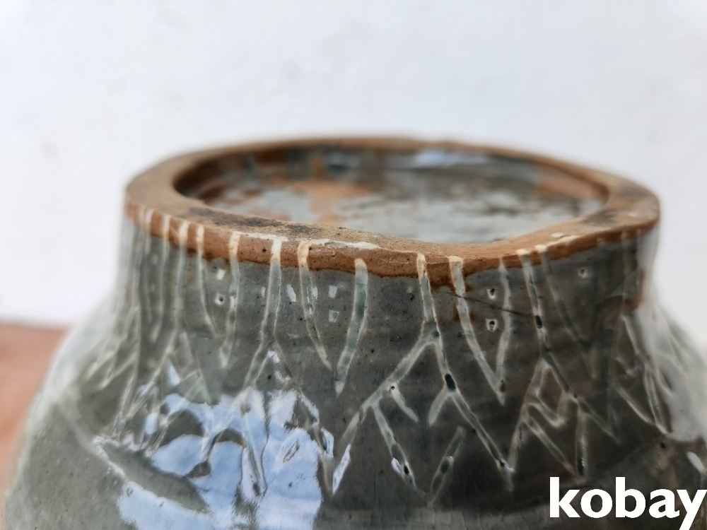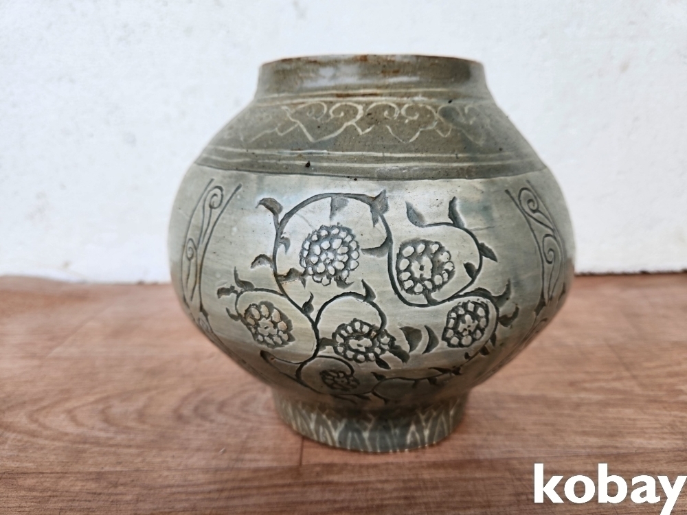 입체감 있는 꽃 문양 분청 도자기 입니다.