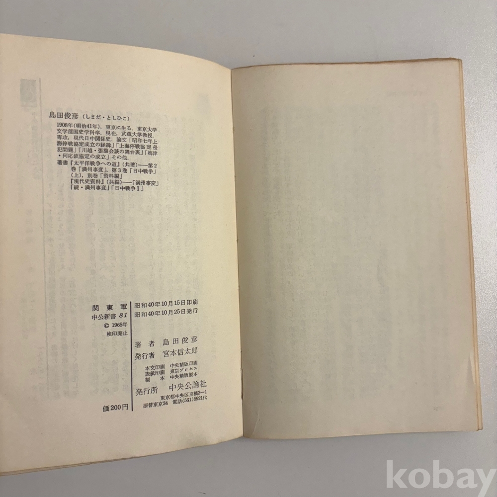 [일본현대사, 만주국, 관동군] 島田俊彦, <關東軍 : 在滿陸軍の獨走(관동군: 재만육군의 독주)>, 중앙공론사, 1965, p. 191, 중급(사진참조)