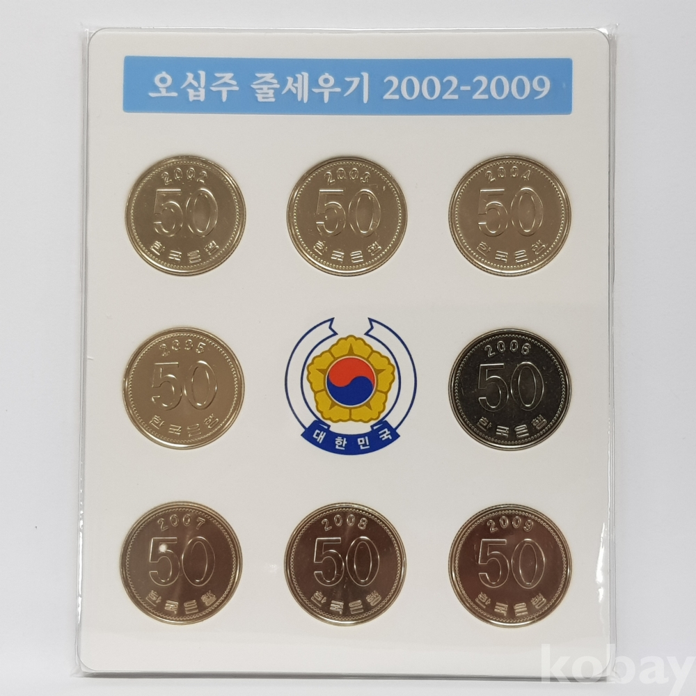 - 미사용 2002년~2009년 50원 / 50주 8점 줄세우기 - 케이스, 보증서 포함
