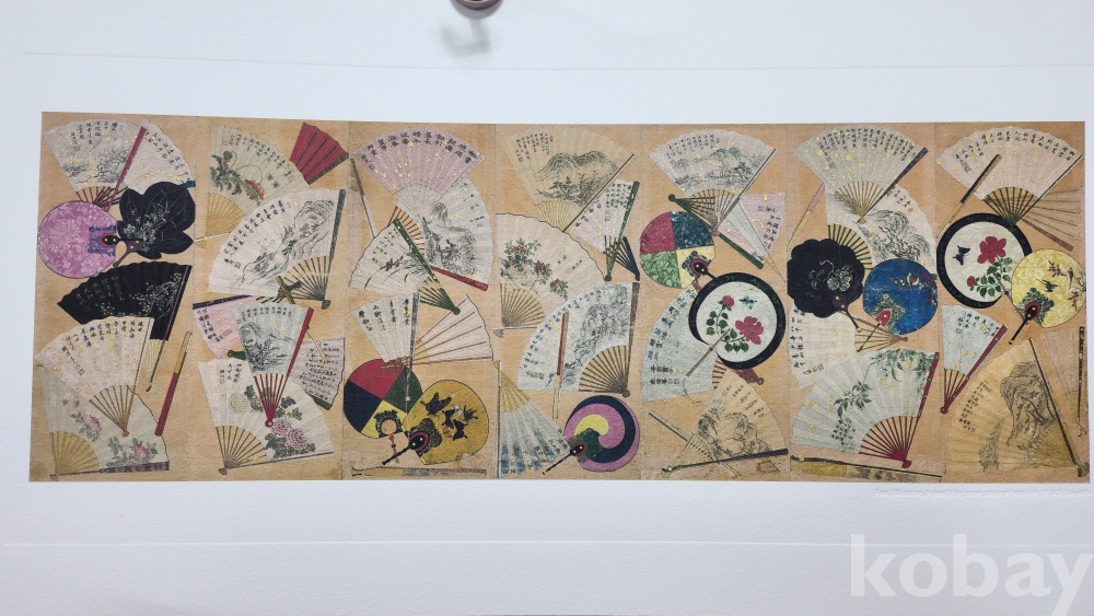 한국의 채색화 선면도(扇面圖) 압인(壓印)판화입니다,