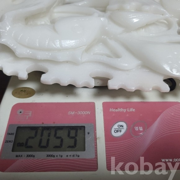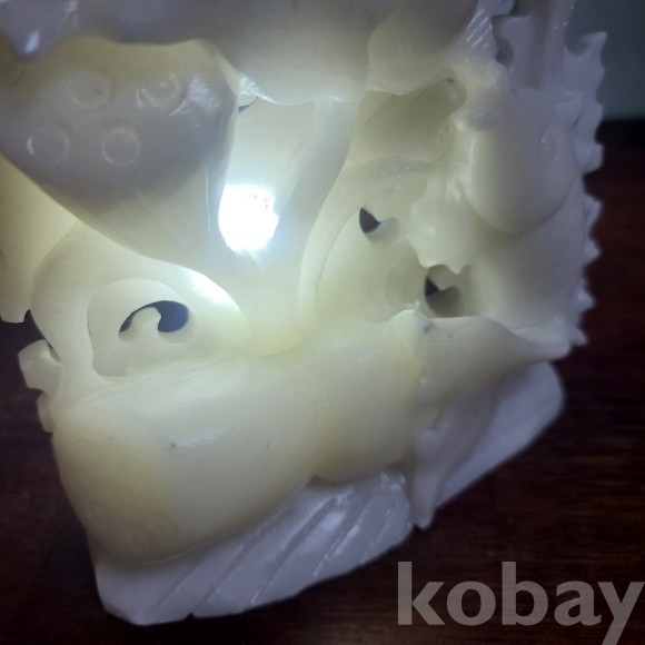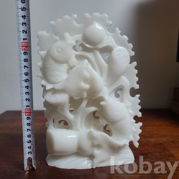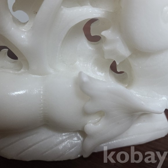 백옥 한 덩어리를 양각으로 잉어문양으로 조각한 작품입니다. 크기와 작품성 가격대비 좋습니다