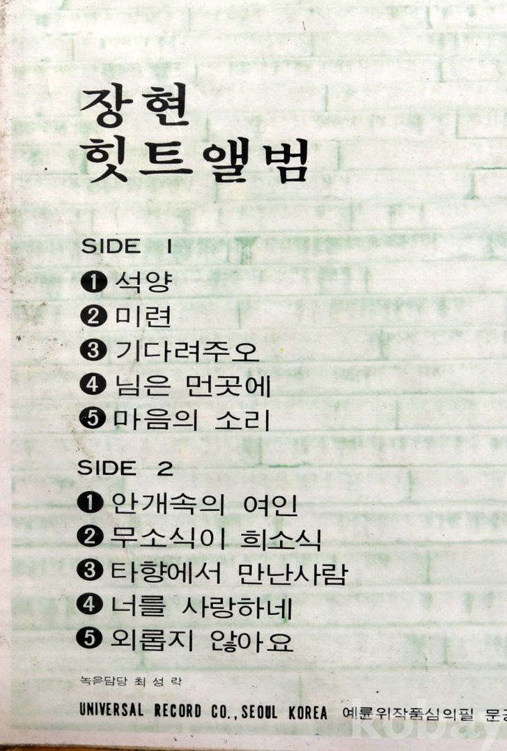 한국LP 장현 히트앨범 입니다.