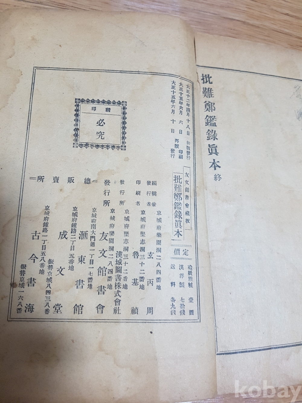 대정 15년 1926년 재판 정감록 1권 단권 입니다