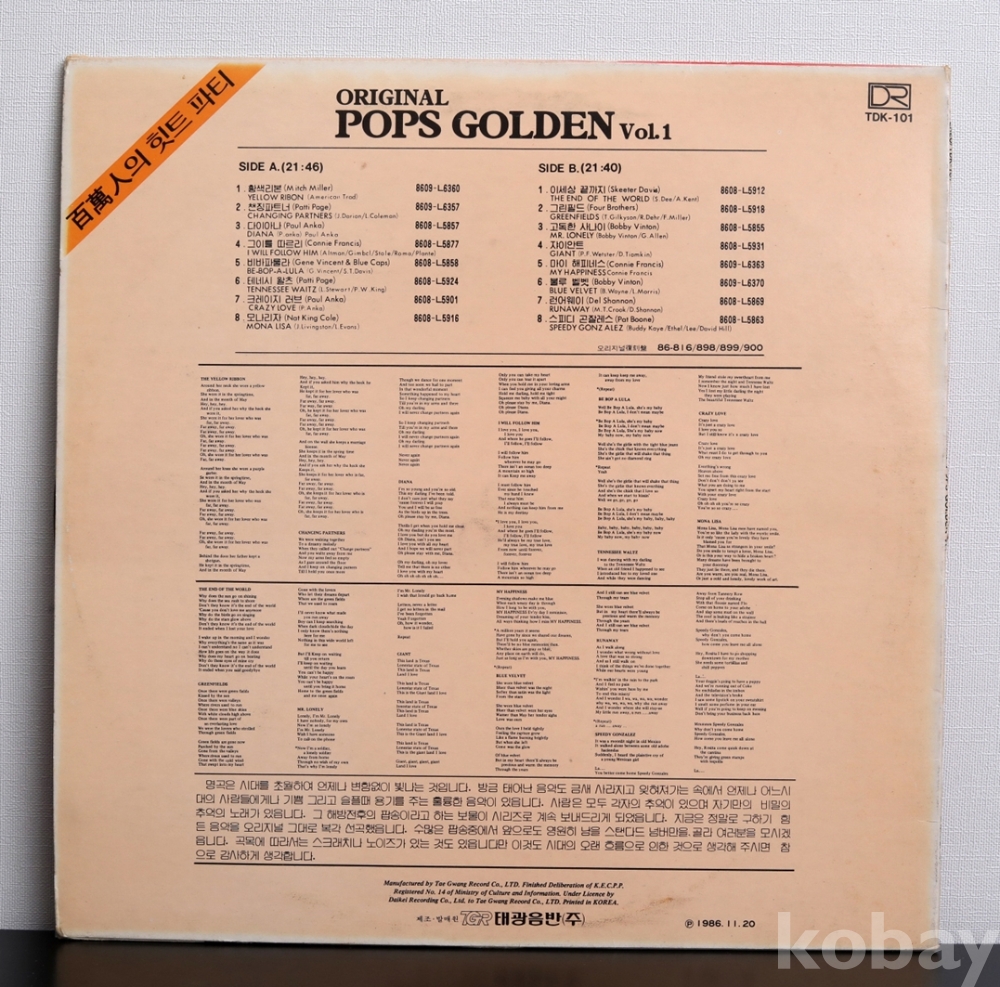 POP LP 옴니버스 팝스골든 (ORIGINAL POPS GOLDEN)앨범 음반