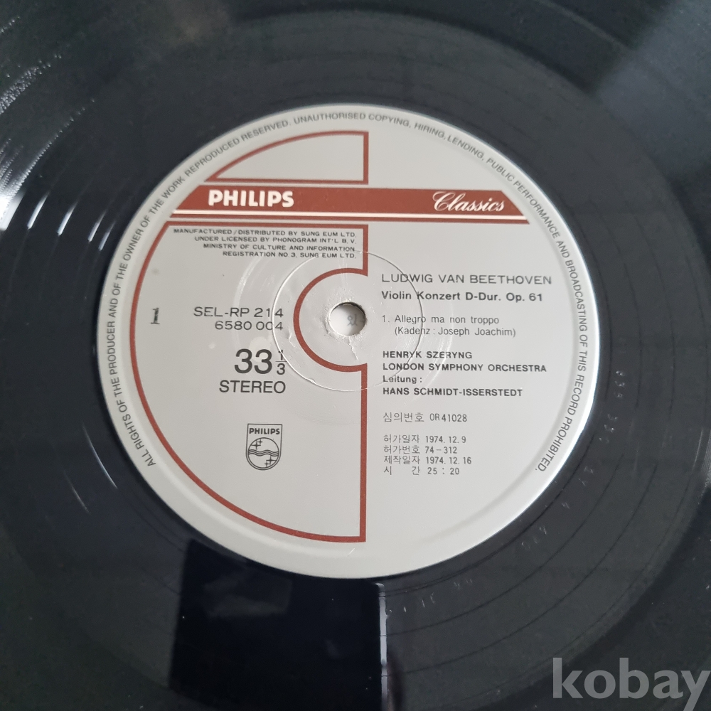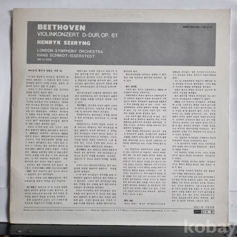 베토벤 바이올린 협주곡 D장조 작품 61 DECCA 성음
