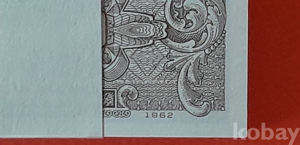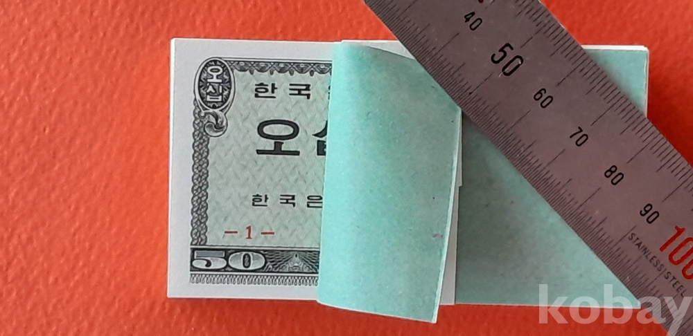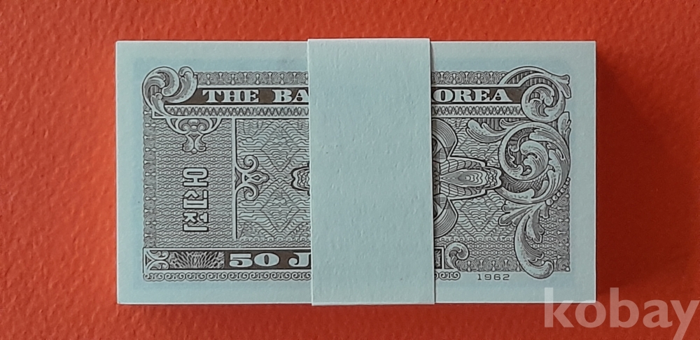 1962년 12월 1일 발행개시 50전권 기호 1번 100매 다발 입니다.