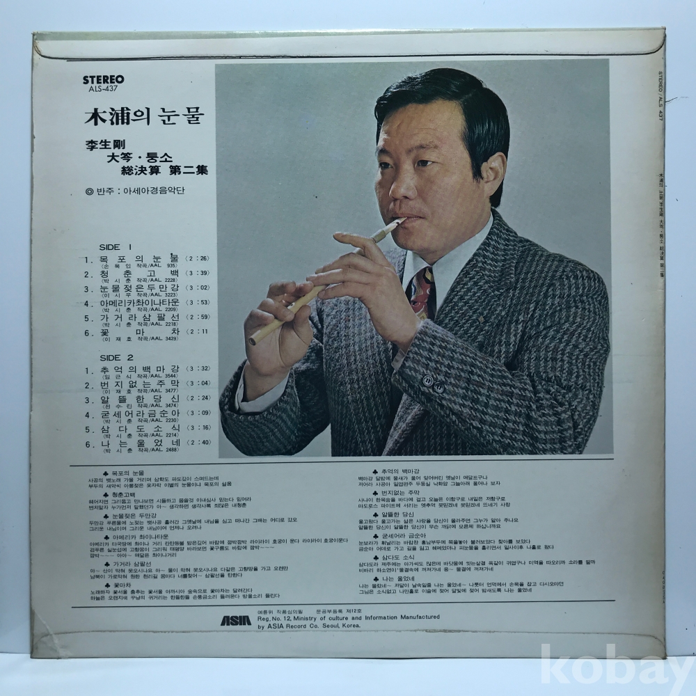 LP 83,805-19 민요 - 목포의 눈물 (이생강 대금) _ 자켓 EX+ 알판 EX+ 76 년 국내반
