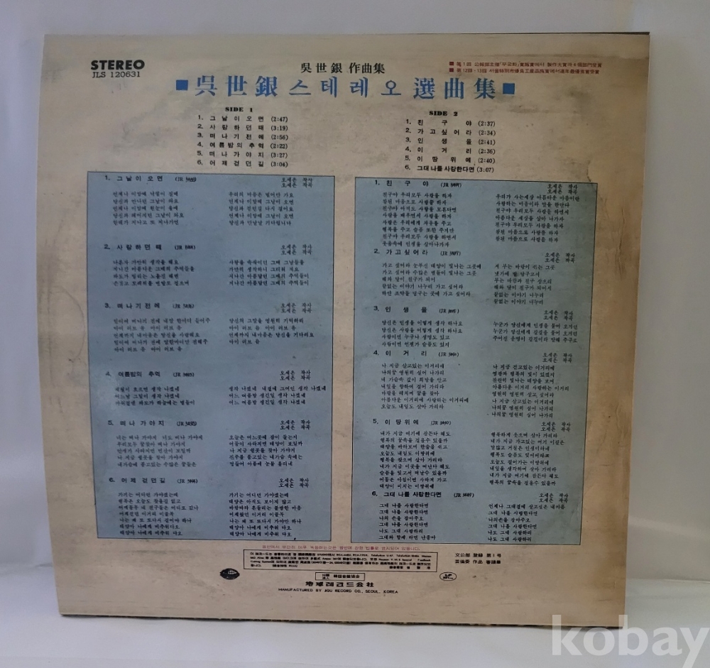 * 음반 : VG (바탕잡음 전체적으로 있으며, 실기스등 사진으로 보이지 않는 연흔등 존재함)