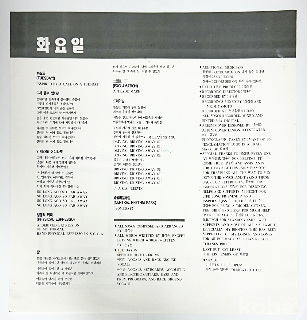 상품 설명 | Side A 1. 화요일 2. 다시 올수 있다면 3. 언제라도 어디라도 4. 행동적 커피 Side B 1. 밤 2. 느낌표 3. 드라이빙 4. 중앙리듬공원 | ||