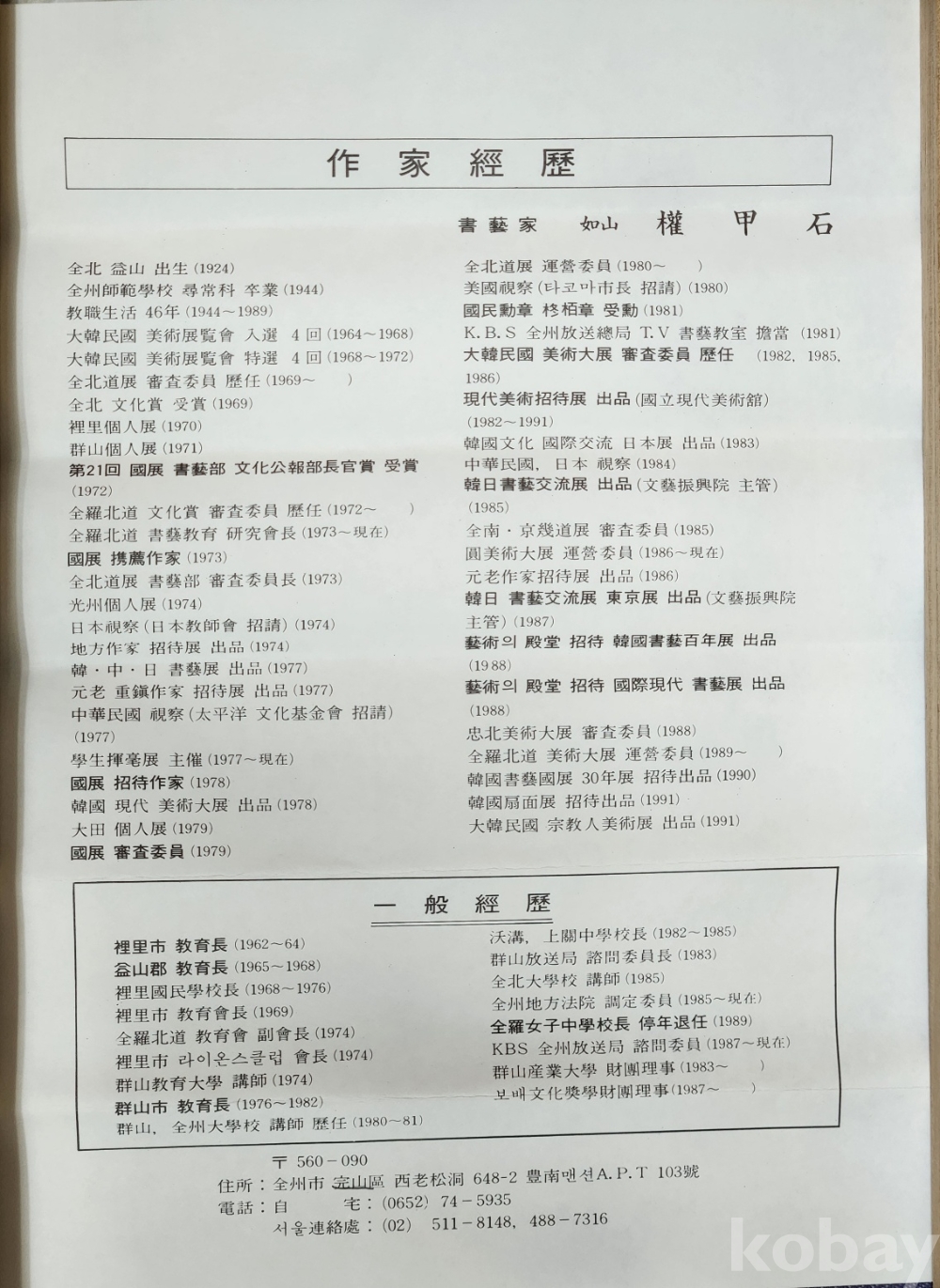 1993년,한국서예100인 초대전,예술의전당