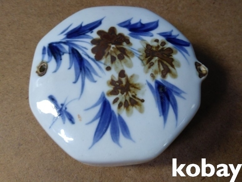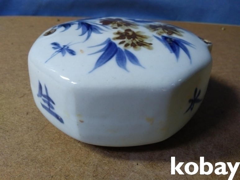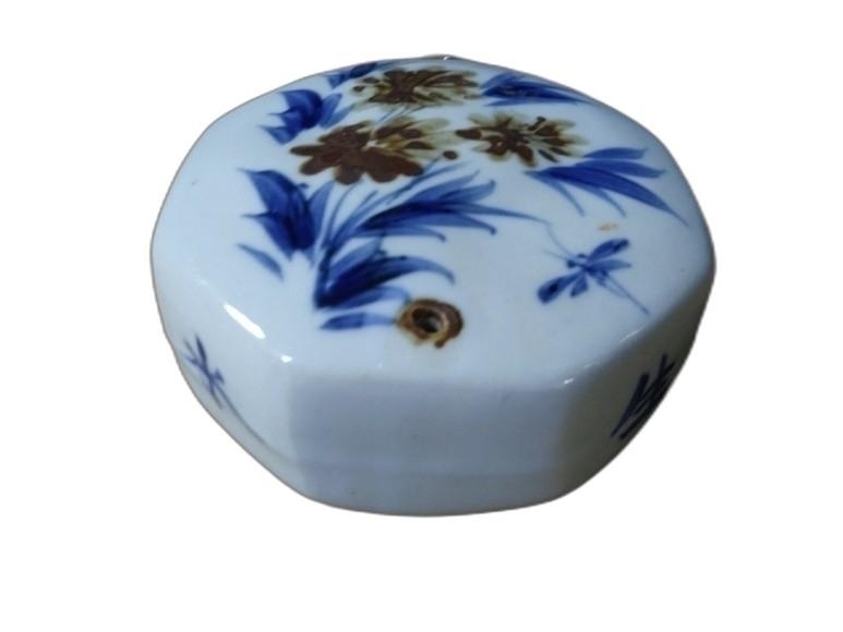 꽃 문양이 있는 8각 연적 도자기 입니다.