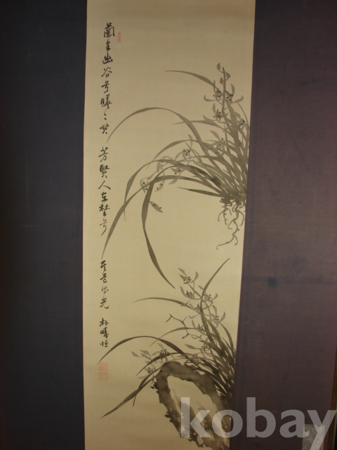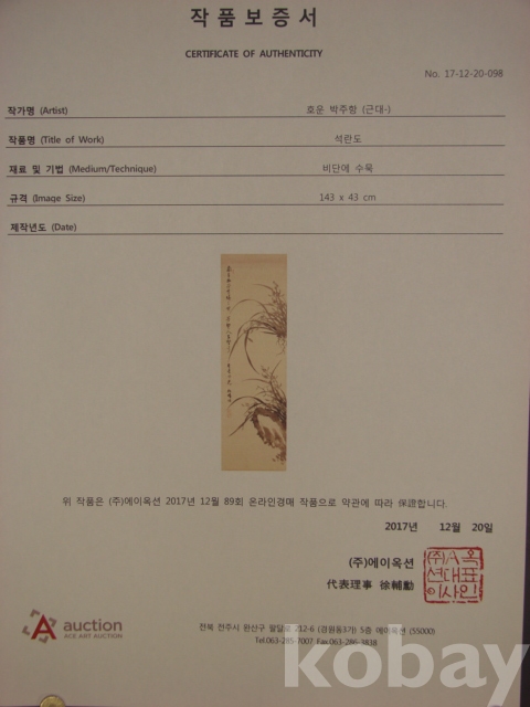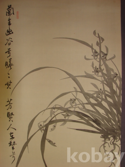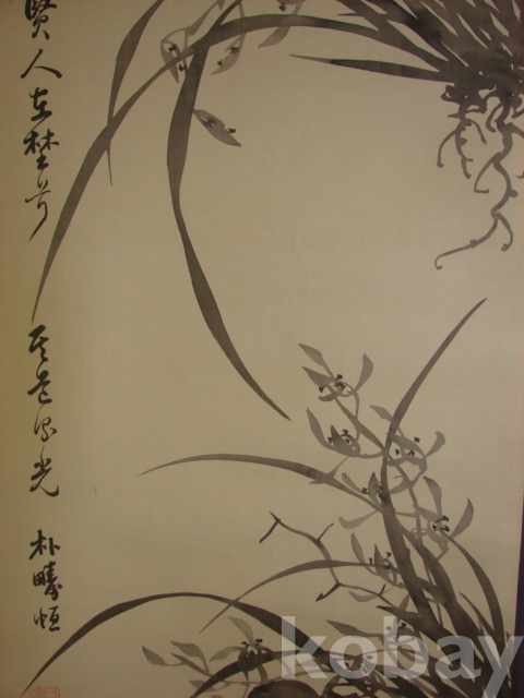 호운 박주항(湖雲 朴疇恒)의 비단에 그린 묵화 대형 석란도(143×43)입니다.