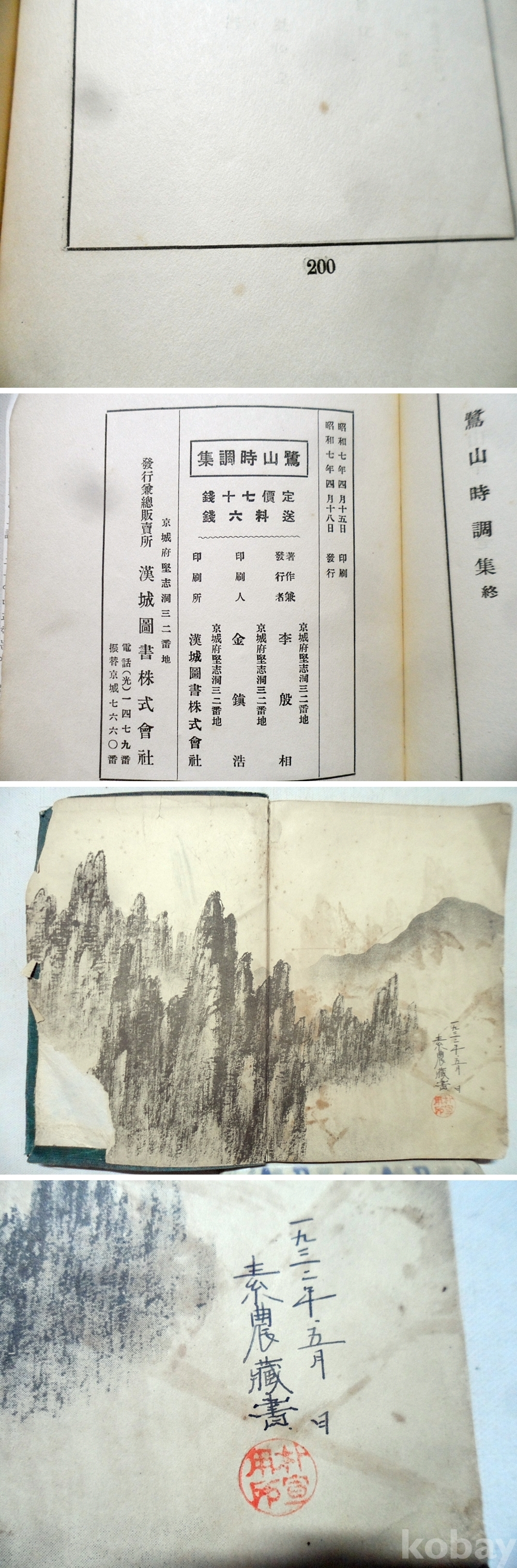1932년 노산 이은상 시조집 초판 한성도서