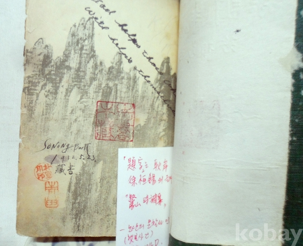 앞 뒤표지 안쪽에 청전 이상범 화백님의 인쇄 그림에 청전이라고 낙관이 하나 찍혀 있고