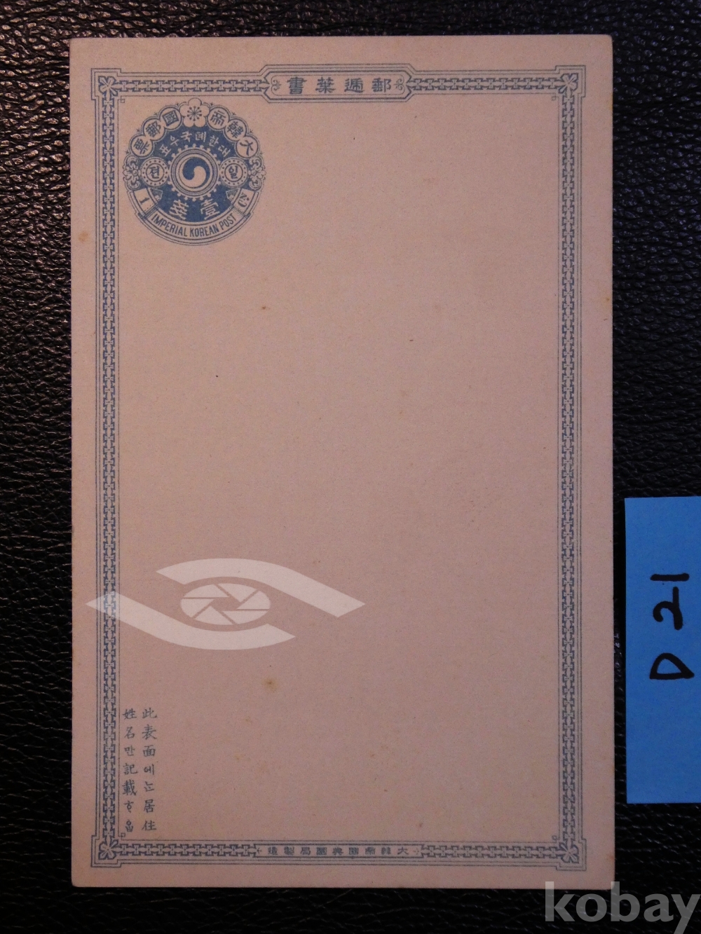 ▣근대한국엽서(진본): 대한제국, 구한국우편엽서, pc2 전환국 인쇄엽서/1매/매우 귀함/일제강점기 우편엽서, 사진엽서, 그림엽서, 회엽서. D21