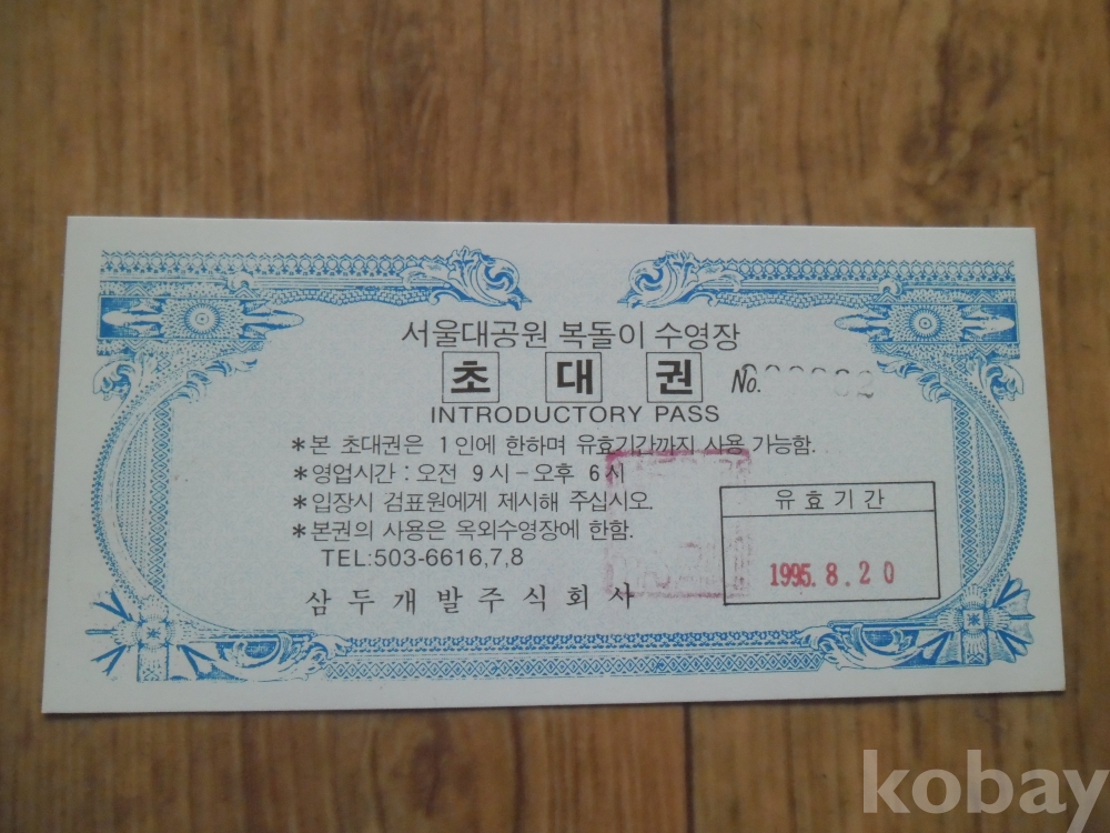 각종 티켓: 1995년 서울대공원 복돌이수영장 초대권