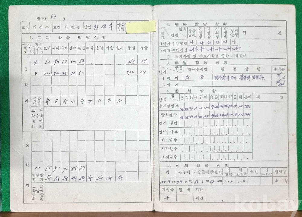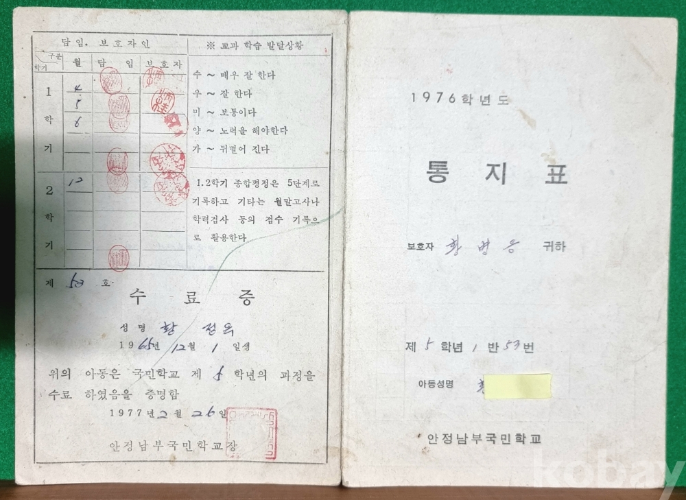 졸업장/통지표/상장_안정남부국민학교/1976년/5학년 생활통지표/
