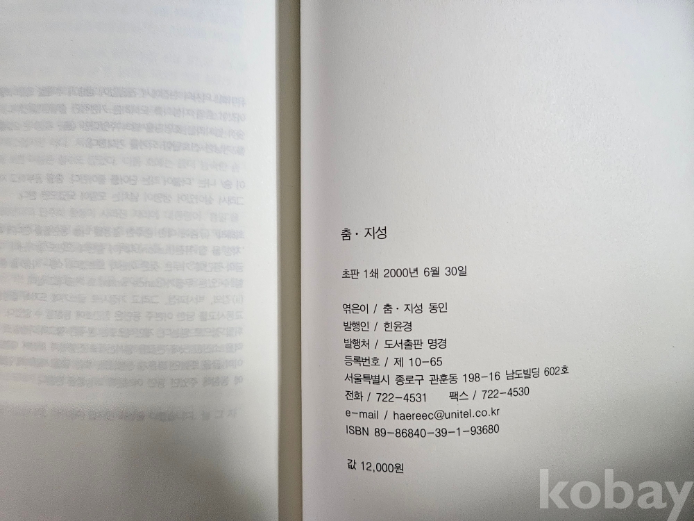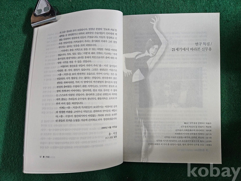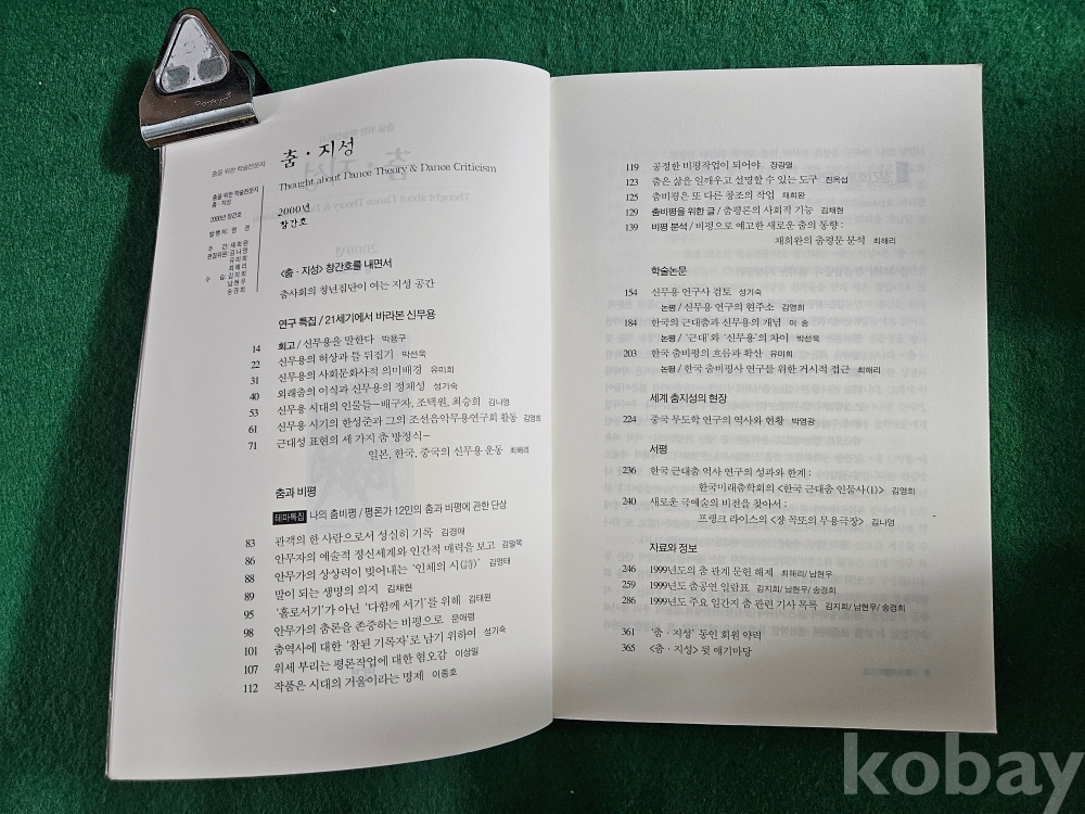 1] 품명 : 춤을 위한 학술전문지 2000년 창간호 " 춤 . 지성 "