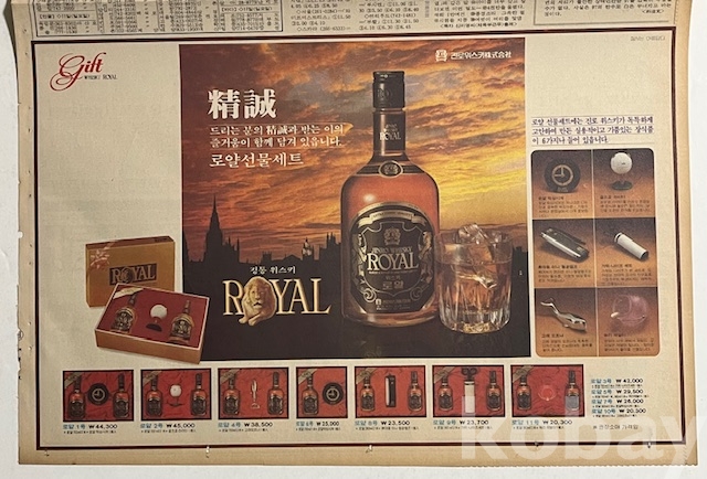 로얄 위스키 광고가 실린 조선일보 낱장입니다.