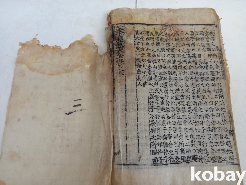 뒤표지 탈락, 우측 상단 얼룩과 헤어짐있음
