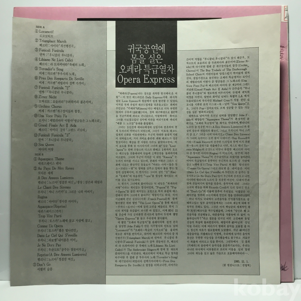 | 자켓상태 | EX : 약간의 마모, 모서리 찢김 존재 | 음반상태 | EX : 재생에 영향 없는 가벼운 기스 존재 | 발매정보 | 알수없음 | 가사지여부 | 무 |
