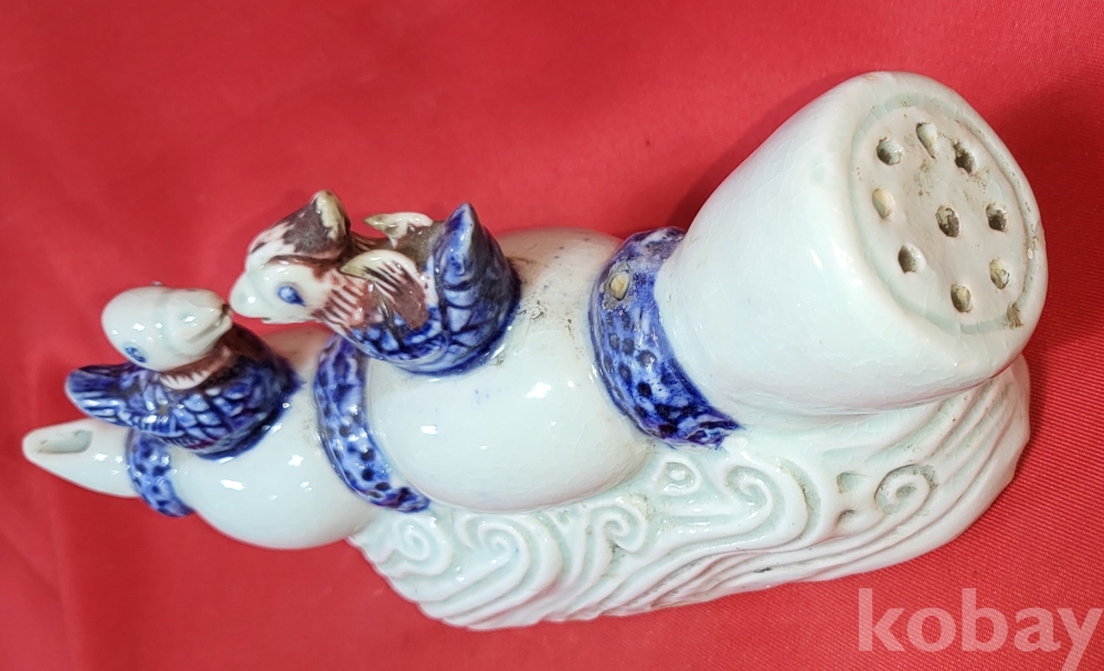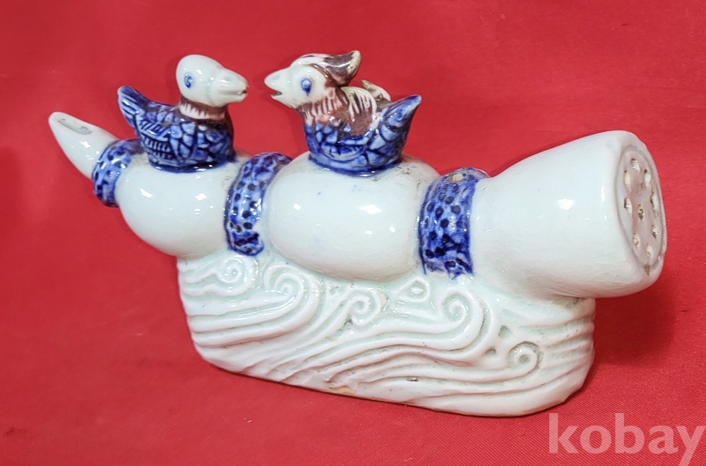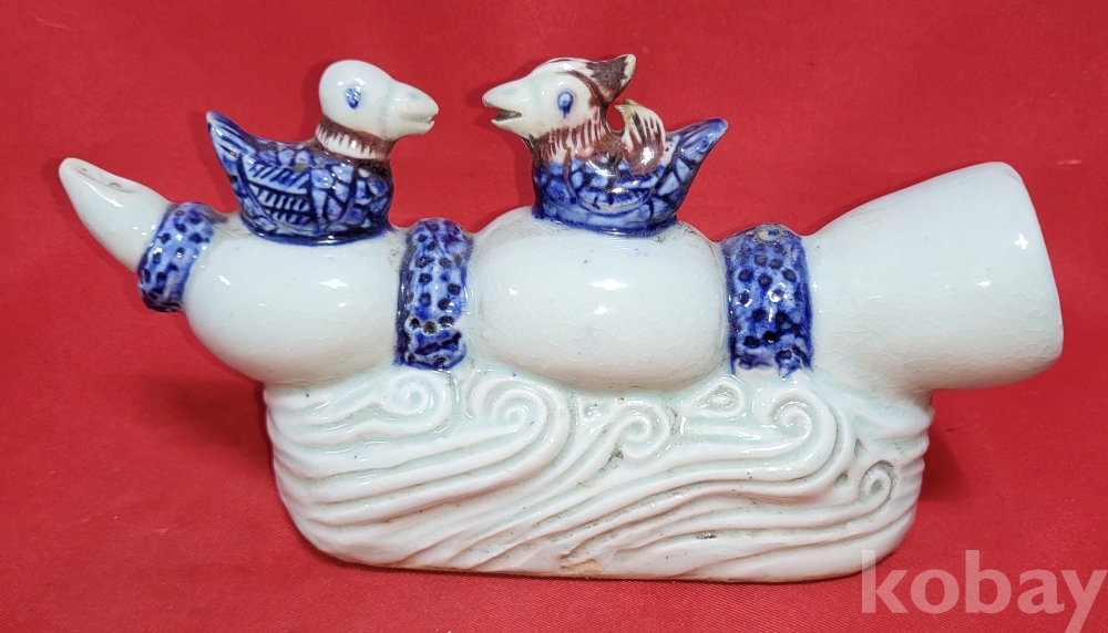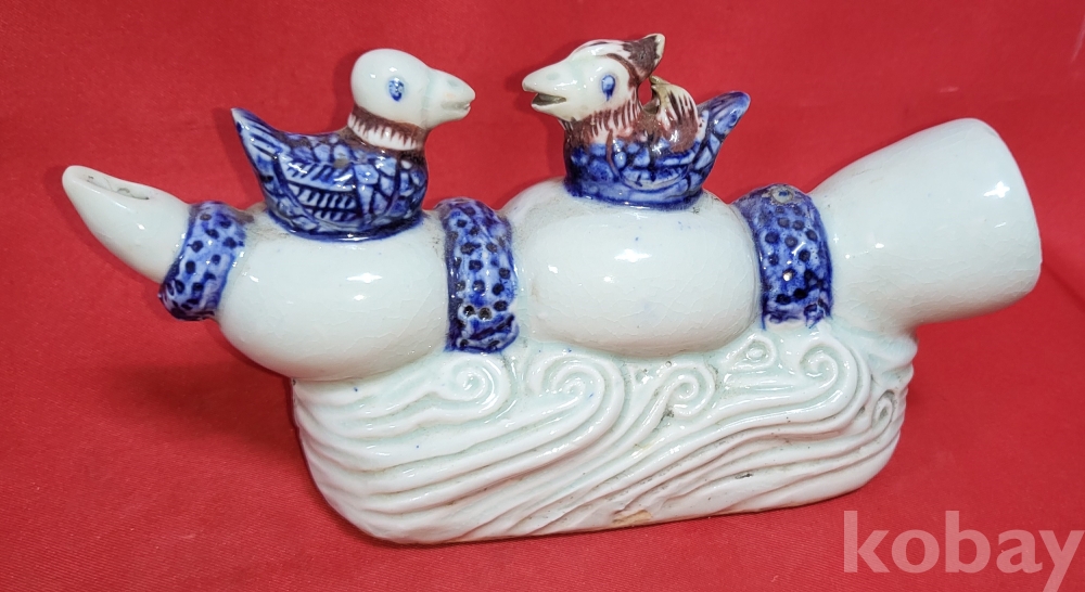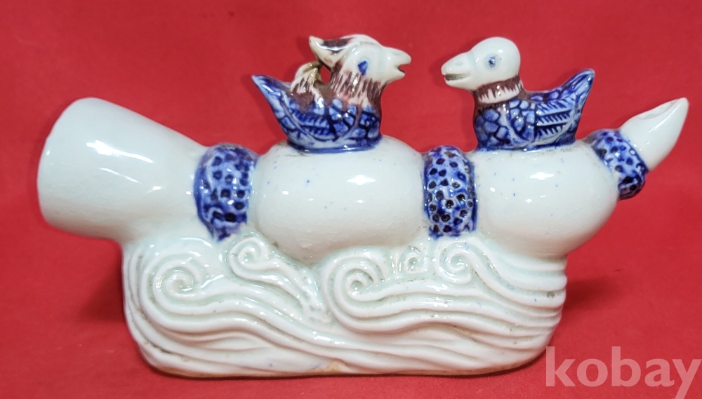 연대좋은 청화 유리홍 원앙문양 큰 연적입니다,