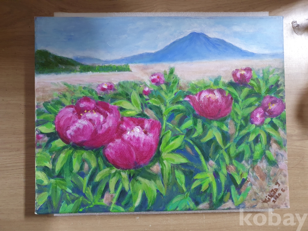 {천원경매} 2-1647 유화 자주색 꽃 액자 (묶음배송 불가, 31.5*41)