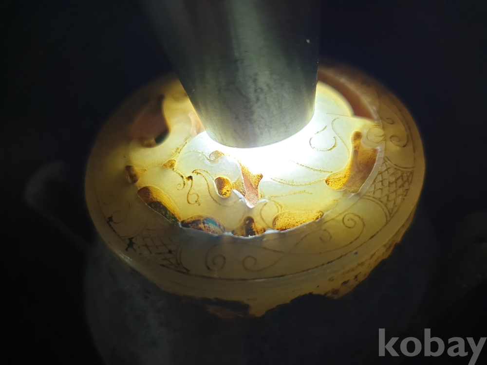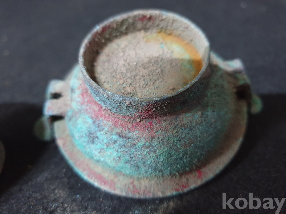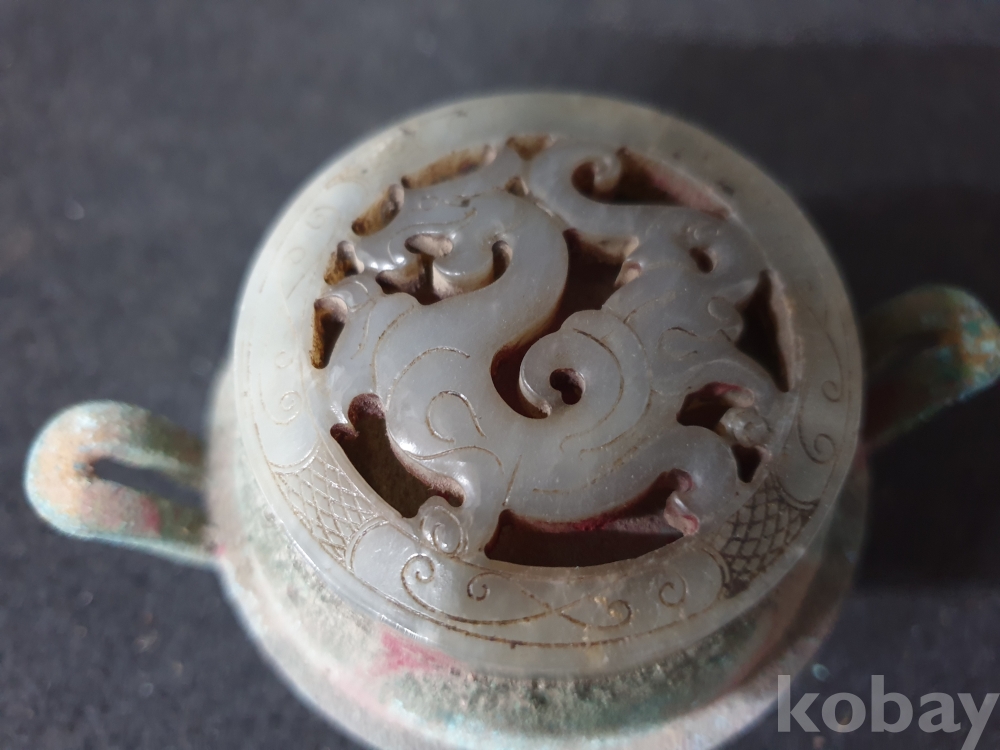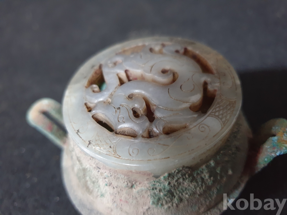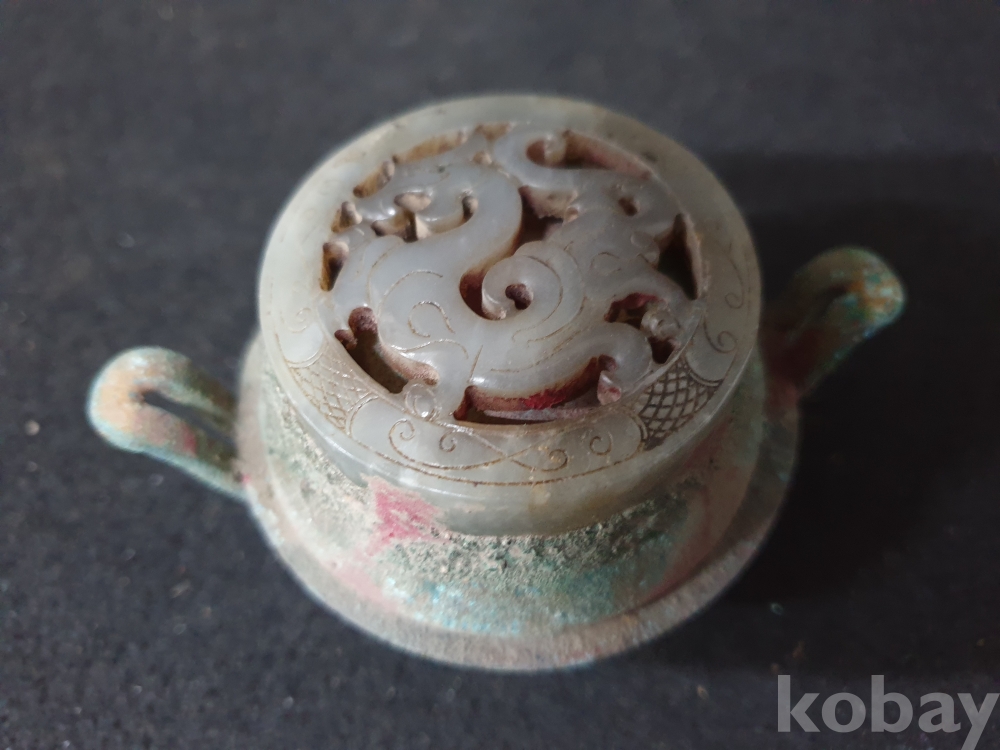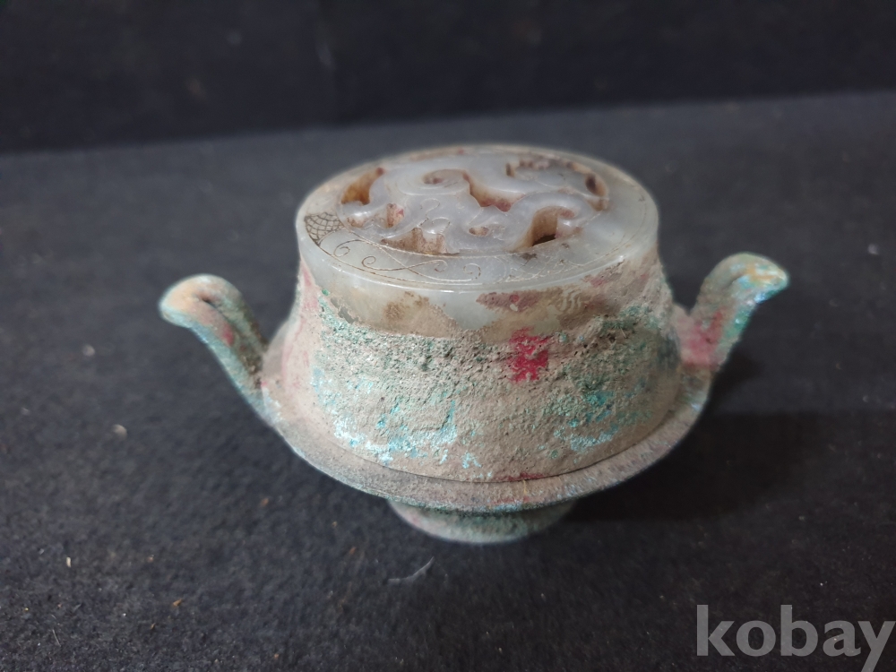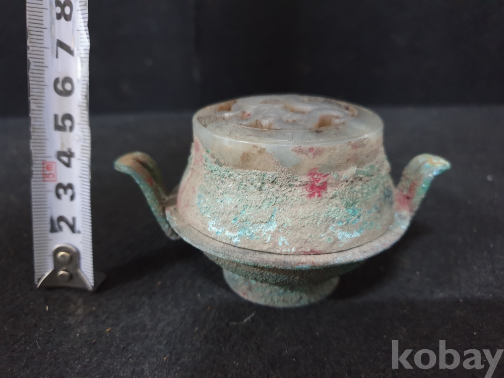 사이즈:높이:6센치.지름:10센치. 무게:171그람. 설명:출토 한대 고급 용문조각 화전옥 조각장식의 황실작 청동 함입니다.극찬의 화려함과 섬세함을 최대의 사진으로 보여드리겠습니다.상태 양호합니다.