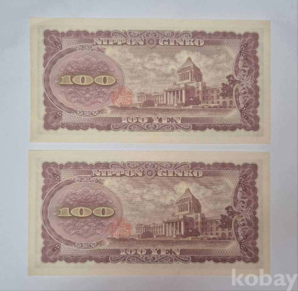 1953년 일본에서 발행된 이타다키 100엔/백엔권 지폐 2매입니다.