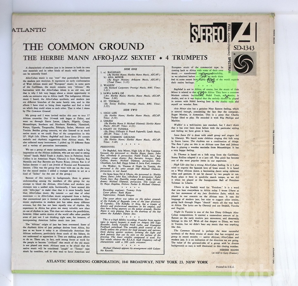 The Herbie Mann Afro-Jazz Sextet + Four Trumpets – The Common Ground 미국반
