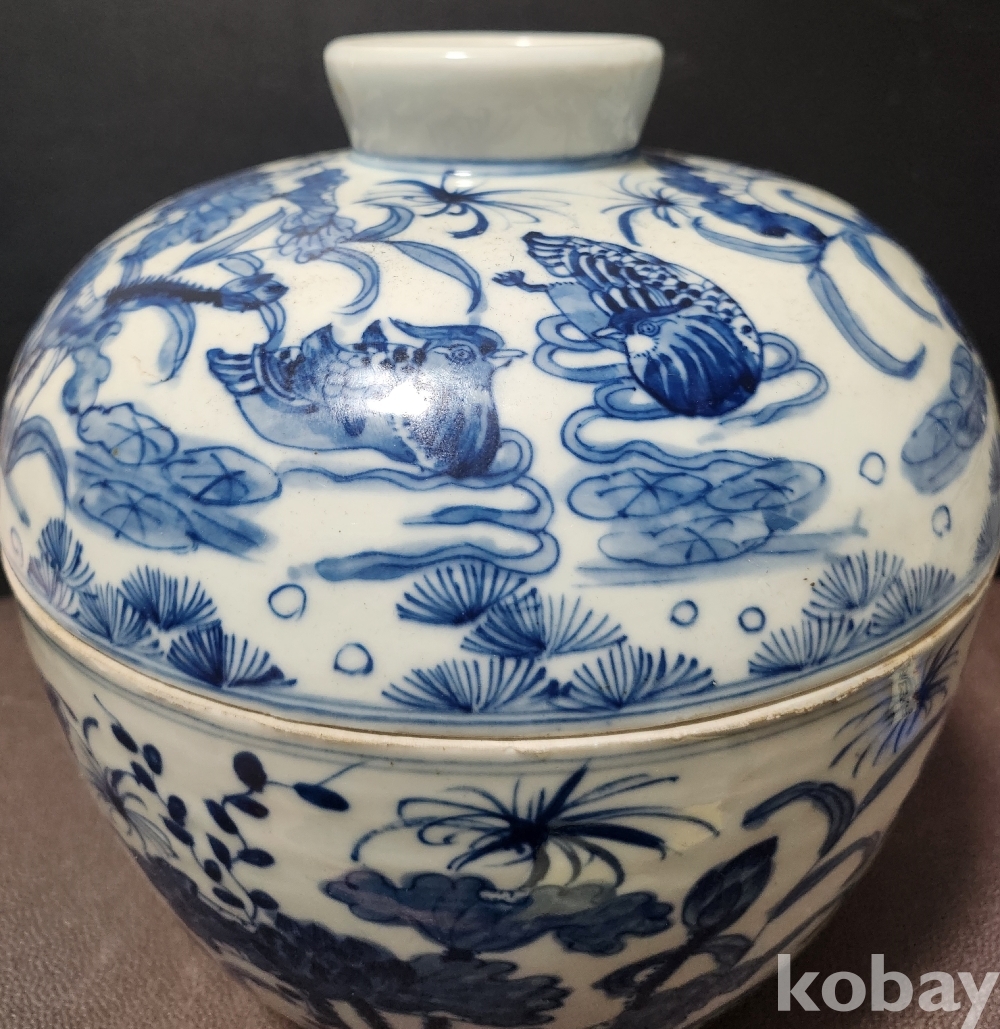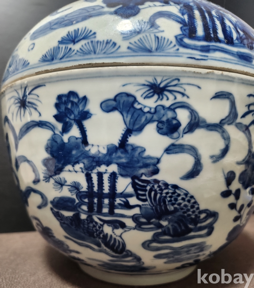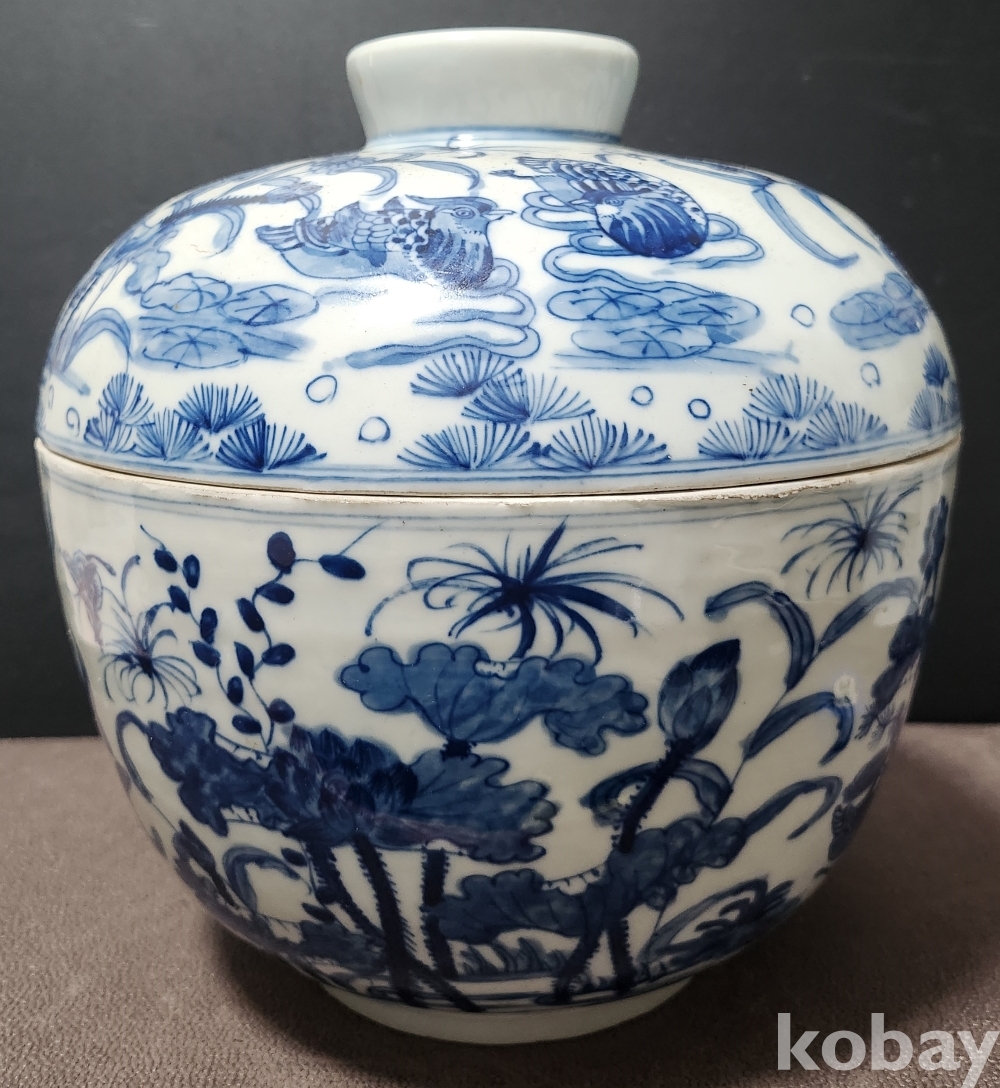 백자청화연홥도문대합 白磁靑華蓮鴨圖紋大盒 < 대형 사이즈 합 合 >